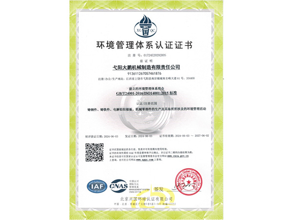 公司順利通過質量管理體系認證、環(huán)境體系認證、職業健康安全管理體系認證、環(huán)評。2015年5月獲國家工信委頒發(fā)的《鑄造企業準入條件》;2019年做了安全現狀評價;2020年取得了排污許可證。